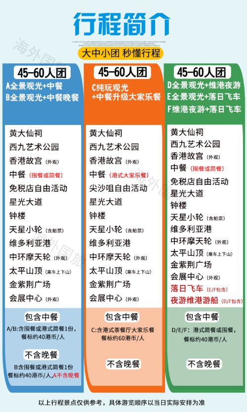 深圳出发香港1日套餐区别: