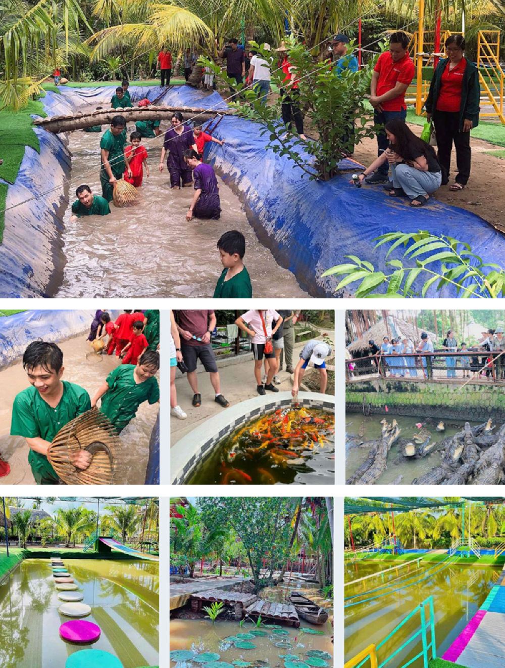 ▲ 越日生态区享用午餐(以下活动为餐厅园区内趣味活动,自行游玩,如部分项目取消或关闭则无费用退回,请悉知!) 1. 品尝地道越南南部风味菜肴。 2. 参观鳄鱼、豪猪、青蛙、蛇及稻田区域。 3. 躺在椰子树下吊床上放松休息。 4. 免费体验传统乡村游戏: 5. 骑单车过猴桥 6. 竹筏划船 7. 玩绳索、木桥、平衡挑战等趣味活动